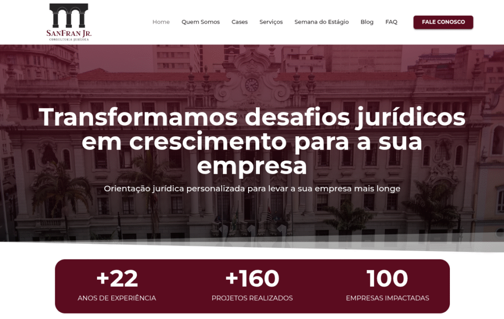 O site foi criado para a empresa júnior SanFran da FDUSP, abrangendo todas as etapas, desde o design e prototipagem até o desenvolvimento final.